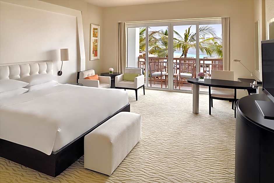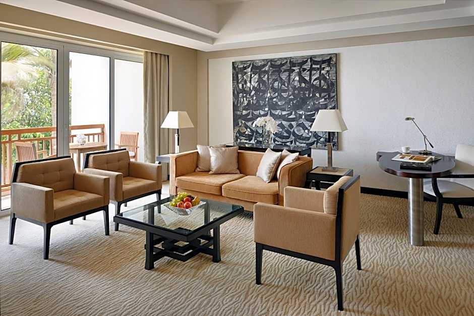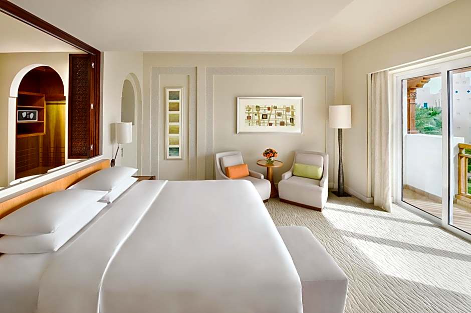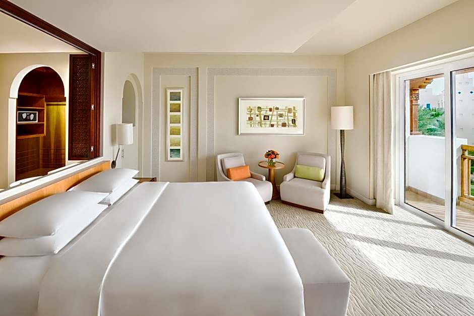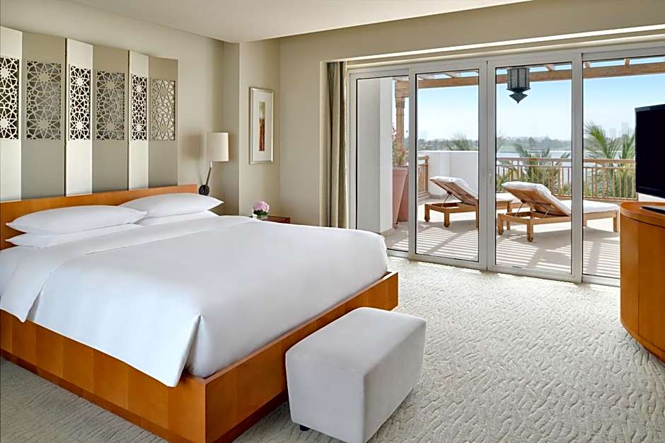 Located just yards from the edge of Dubai Creek, the roomy 107 sqm suite features private patio and separate living, work and wardrobe areas, with comfortable sofa and lounge chairs, work area with complimentary wireless internet, full mini bar, bath with separate tub and walk-in shower and king bedroom. Twin connecting room available.