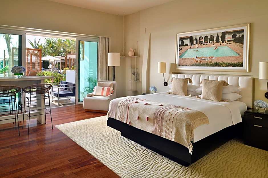 The 52-55 sqm room offers direct access to the Azure lagoon. It features a private terrace, one king bed, a walk-in shower and a work desk with complimentary wireless internet. The room also offers complimentary daily fruit and mineral water. This newest room is available for adults only and children aged 16 and above.